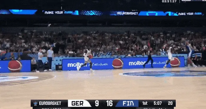 虎扑09月12日讯 男篮欧锦赛半决赛,德国对阵芬兰的比赛正在进行中。